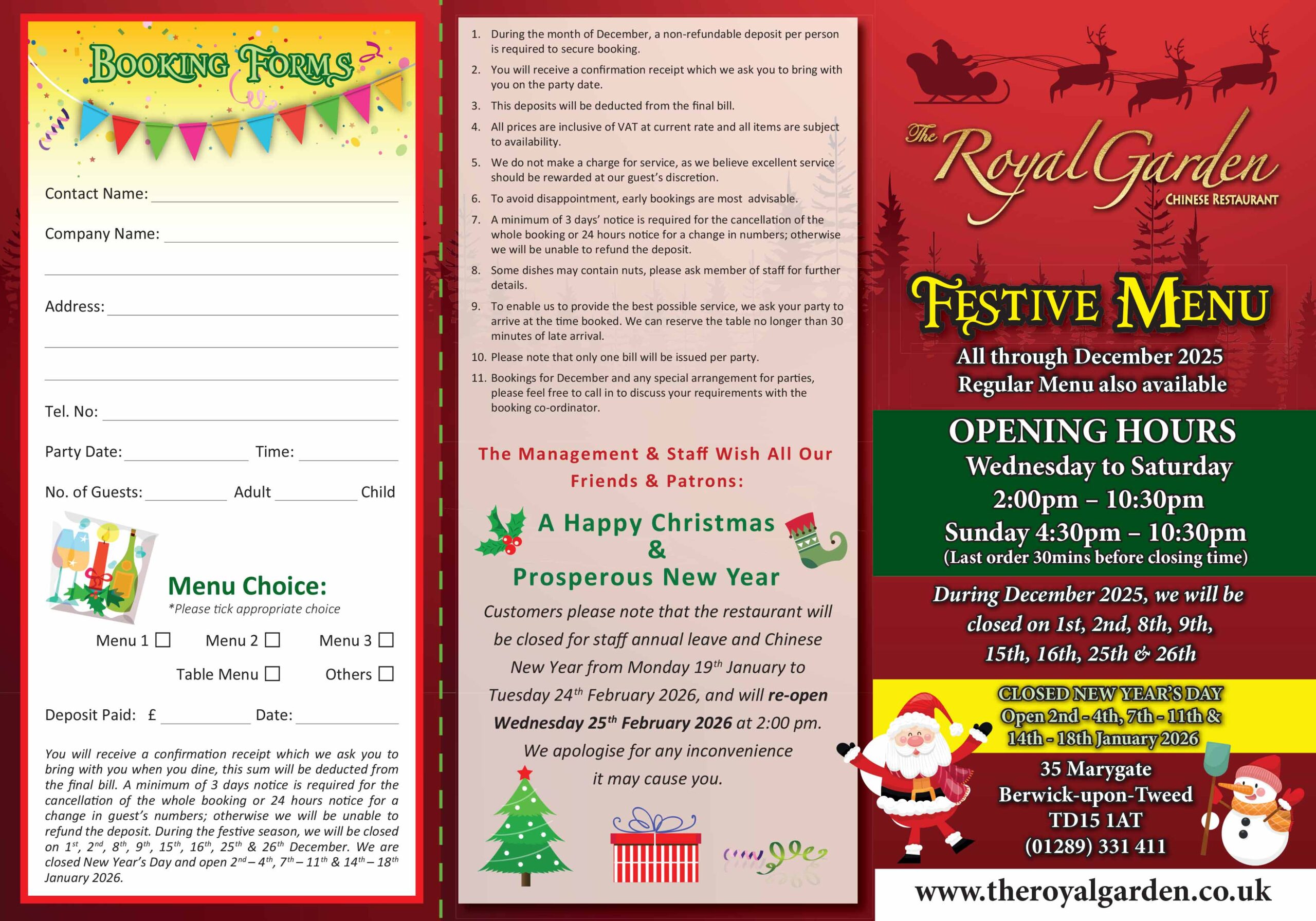 Closed on Monday & Tuesday
